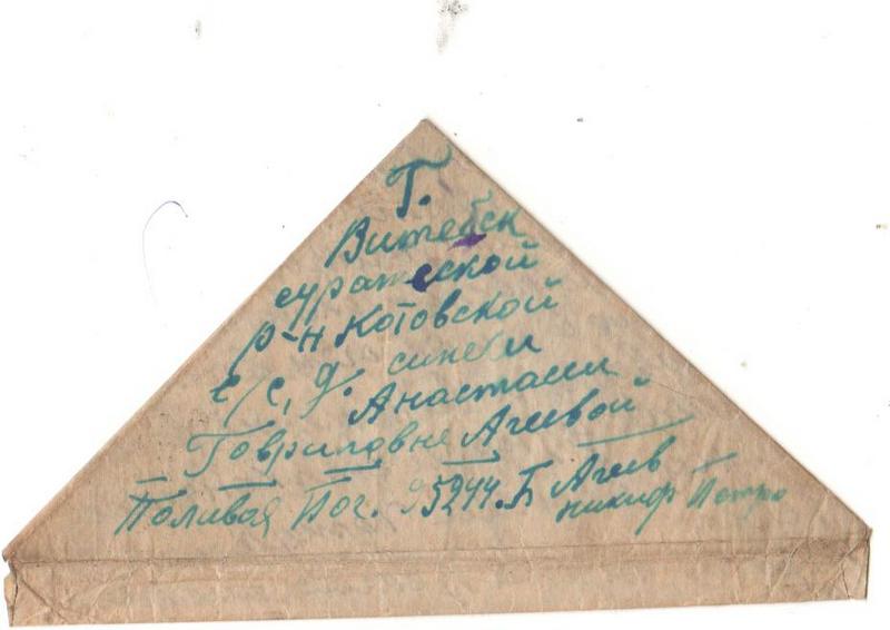 Людмила Васильевна Агеева работает библиотекарем в отделе библиотечного маркетинга государственного учреждения культуры «Витебская районная централизованная библиотечная система» Республики Беларусь. Она представила в Интернет-дневник уникальное оцифрованное письмо (судя по всему, последнее письмо, предсмертное). Это письмо её родственника Никифора Петровича Агеева, участника Великой Отечественной войны. Он родился в 1903 году в Суражском районе Котовского сельсовета д. Синяки.