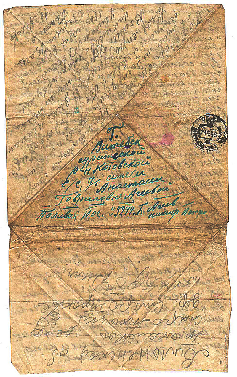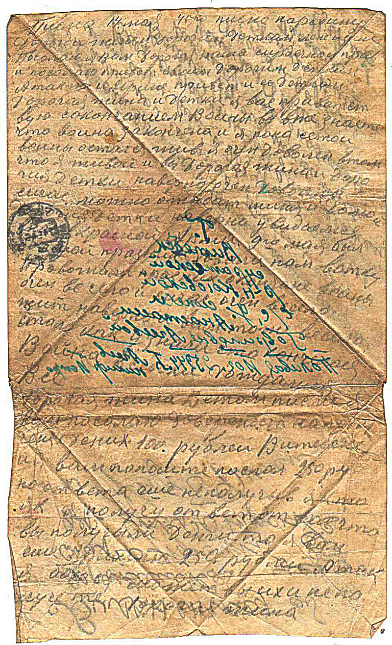 … А вот и само письмо…так сказать прощальное, хотя сам Никифор Петрович об этом даже и не задумывался… в письме он приветствует свою жену и детей поздравляет с окончанием войны, говорит о том, что остался жив и спешит домой. Но, к сожалению, он так и не вернулся к своим родным и близким - ни через день, ни через два и даже спустя много лет… Он пропал без вести…О нём до сих пор ничего не известно…