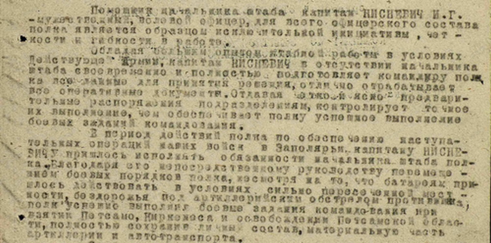 - наградной лист Нисневича И.Г. (увеличенный вариант боевого подвига из наградного листа),