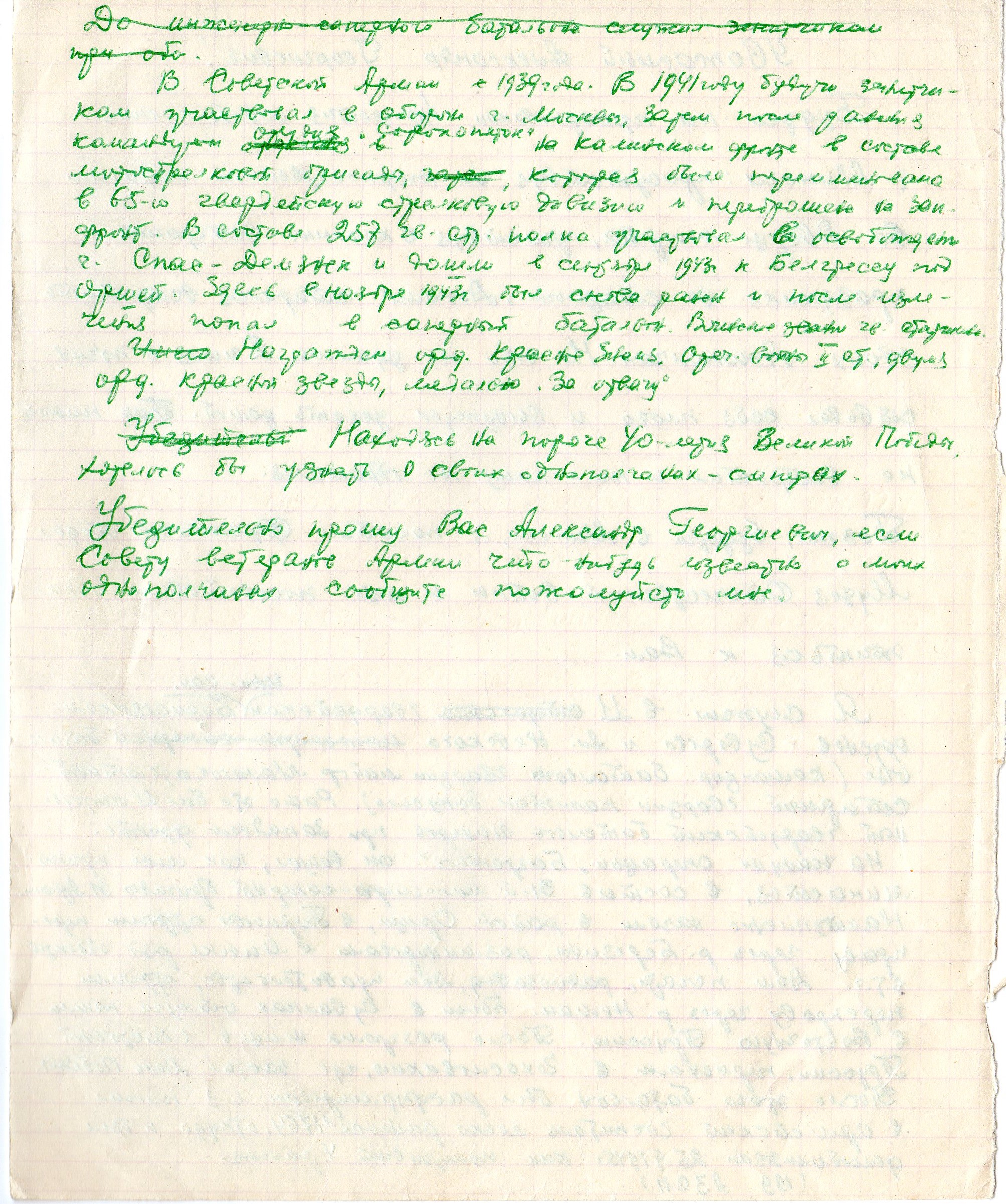 Убедительно прошу Вас, Александр Георгиевич, если Совету ветеранов Армии что-нибудь известно о моих однополчанах сообщите, пожалуйста, мне.