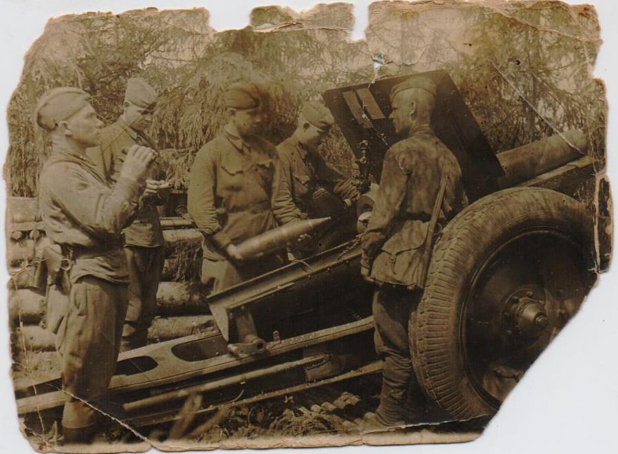 На обратной стороне фотографии надпись: "Лучший наводчик 6 батареи 211 арт. полка комсомолец Калинкин Егор Никитович. За короткое время овладел специальностью командира орудия и в любую минуту может самостоятельно командовать орудиями. Подготовил 2-х запасных наводчиков. Мастер меткого артогня".