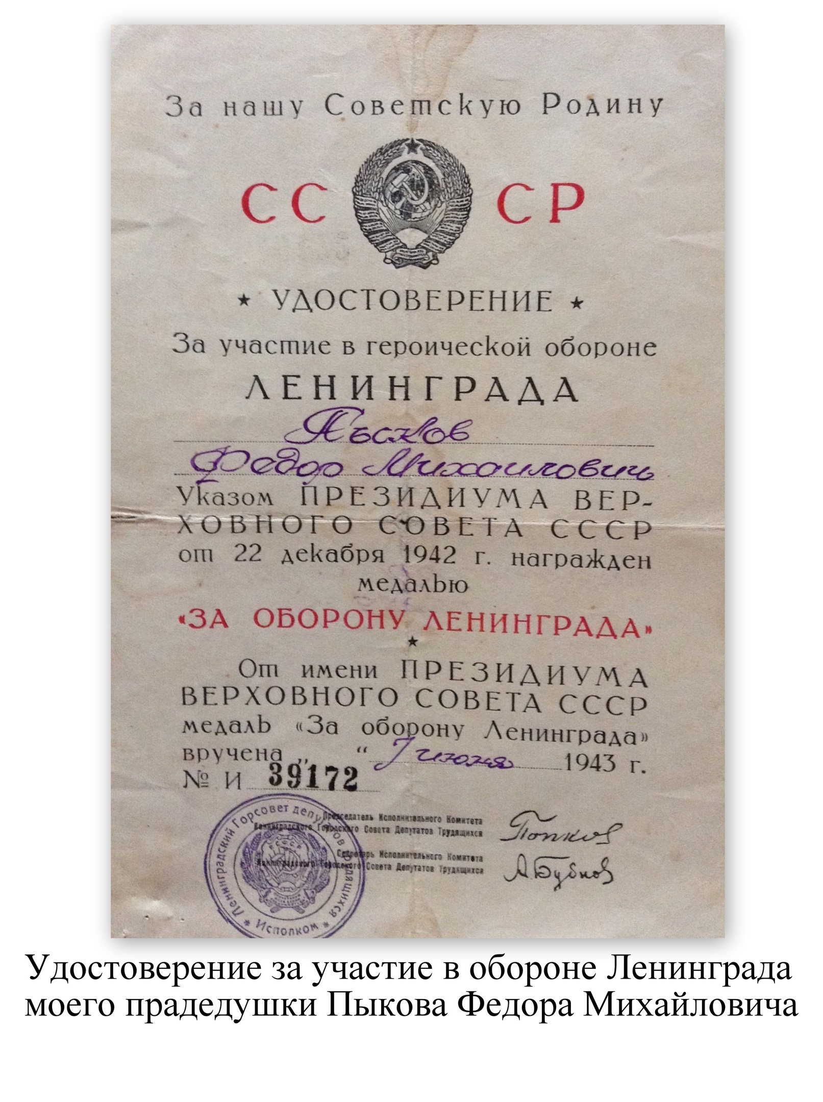 Прадед находился в блокадном Ленинграде до его освобождения. У Федора было много медалей, но одной он дорожил больше всего – «За оборону Ленинграда».
