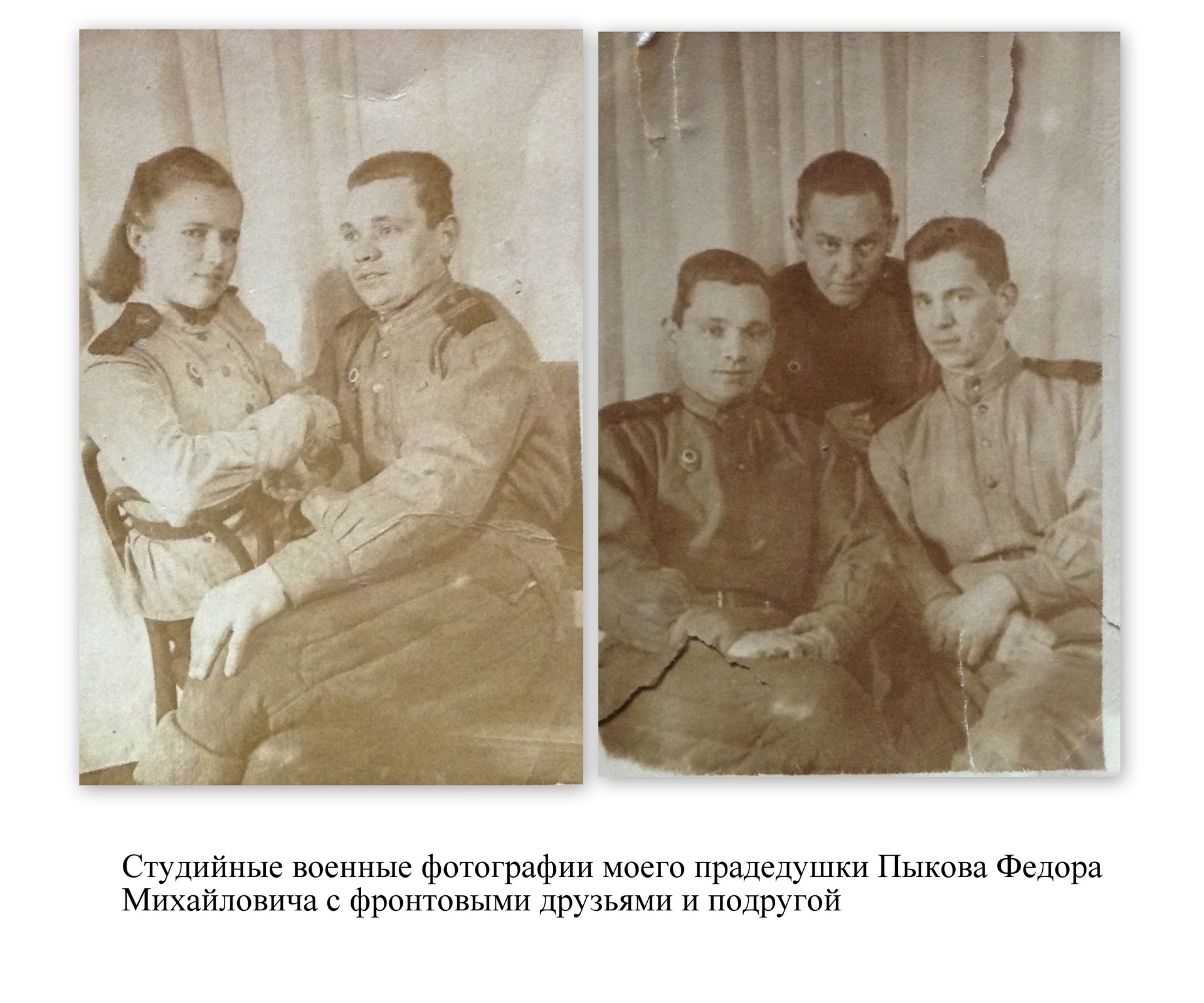 Мой прадед - Пыков Федор Михайлович - герой. Он родился в 1921 году в д. Рвы Дновского района. До войны успел окончить семилетнюю школу, что было тогда редкостью, и поступить на службу в почтовое отделение г. Дно.