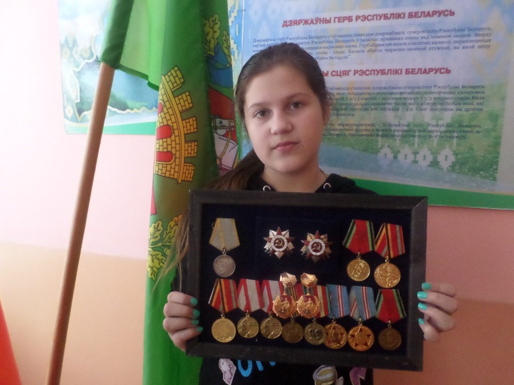 Много страданий, трудностей выпало на долю моих близких. Они сделали всё для того, чтобы я, их правнучка, жила и училась в свободной стране. Каждый год я и моя семья в великий День Победы склоняем головы перед памятником воинам-землякам, который находится в нашей деревне Мишковичи. И пусть мои близкие похоронены в другом месте, они ушли в мирное время, мысленно мы благодарим их за всё: за мужество, за стойкость, за отвагу и безграничную любовь к своей Земле.