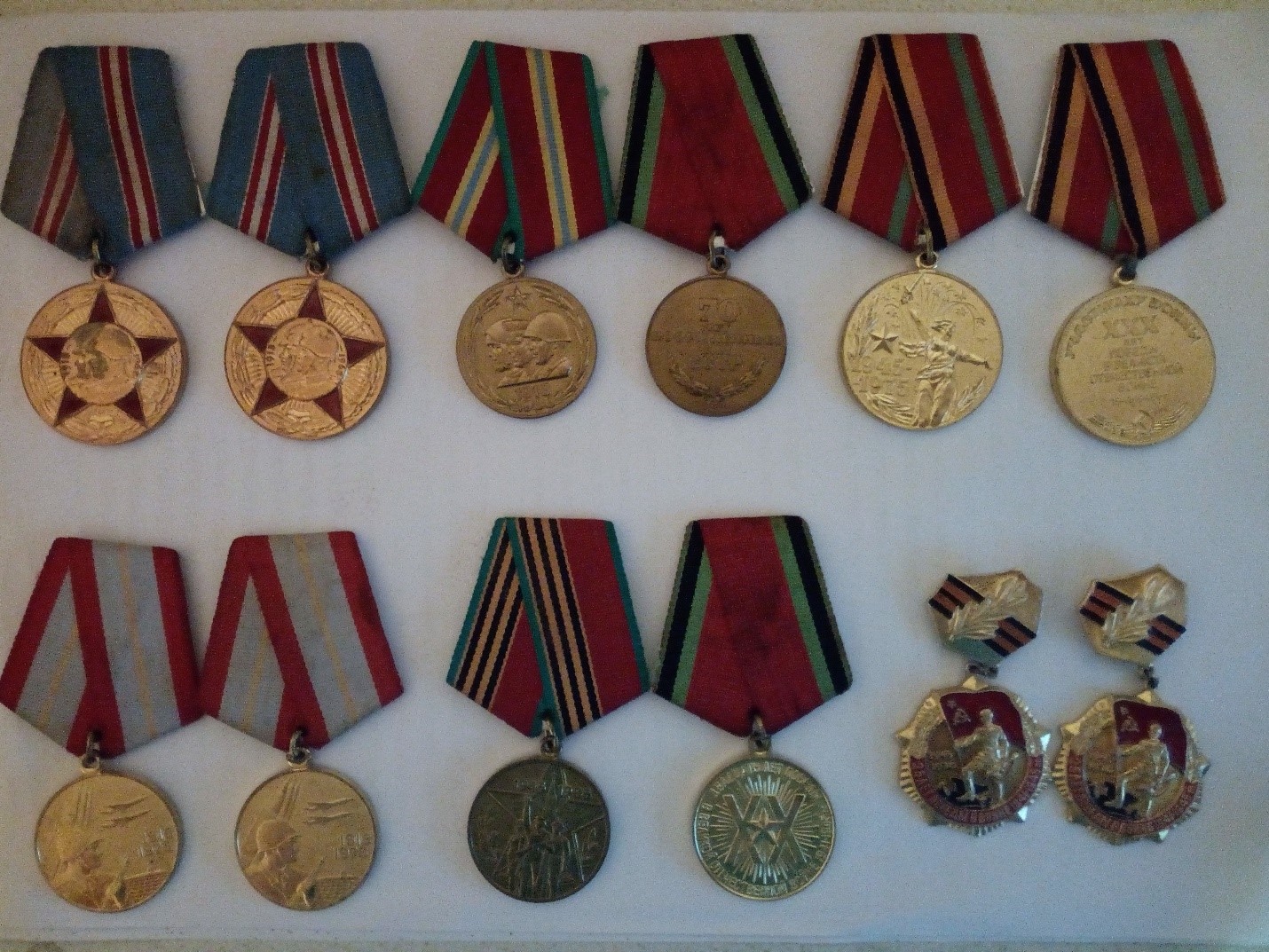 Также в моей «Семейной реликвии» сохранились юбилейные медали: 20 лет Победы, 25 лет Победы, 30 лет Победы, 40 лет Победы, 50 лет Победы, 60 лет Вооружённым силам, 70 лет Вооружённым силам.